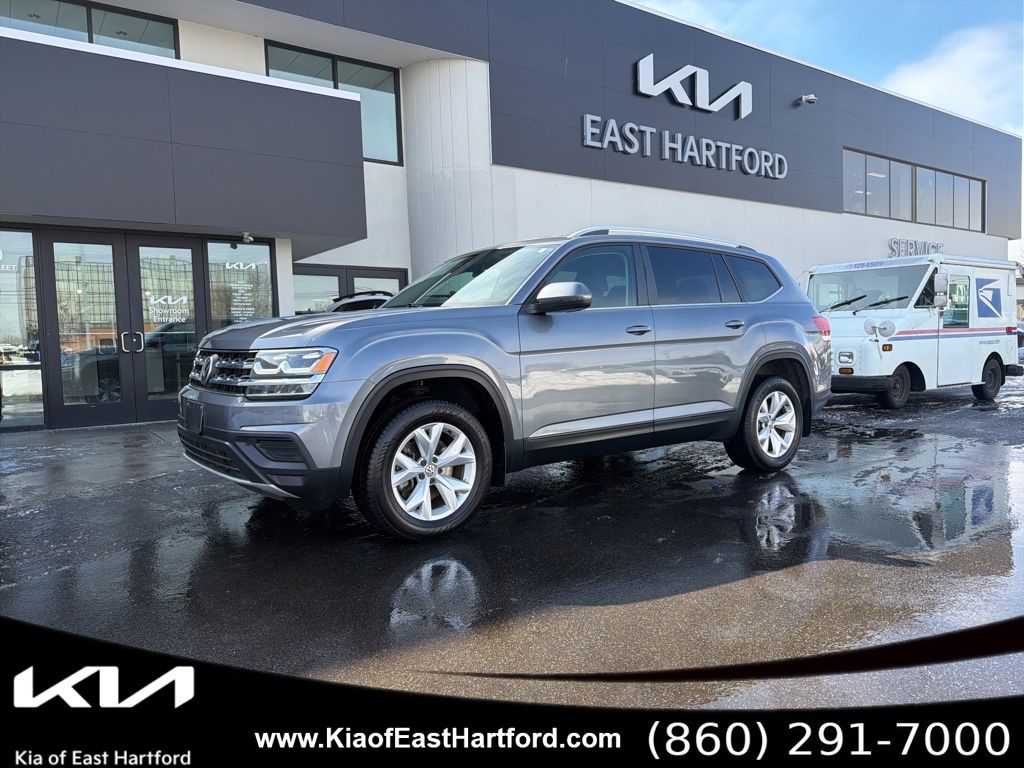 2019 Volkswagen Atlas 3.6L V6 S 4MOTION is a bold and capable three-row SUV engineered for families who demand space, power, and year-round confidence. Finished in Platinum Gray Metallic with a refined Titan Black interior, this AWD Volkswagen Atlas delivers a commanding road presence paired with practical versatility. Powered by a robust 3.6L VR6 engine and equipped with Volkswagens 4MOTION all-wheel drive system, this midsize SUV is designed to handle changing New England weather while providing smooth, responsive performance on every drive.This one-owner 2019 Volkswagen Atlas comes with a complete service history, offering peace of mind and documented maintenance care. The Platinum Gray Metallic exterior paired with Titan Black cloth seating surfaces is one of the most sought-after color combinations, delivering a clean, upscale look that appeals to families and SUV buyers searching for a dependable AWD third-row SUV. With its strong V6 performance, 8-speed automatic transmission with Tiptronic, and factory Towing Package, this Atlas stands out for buyers looking for a Volkswagen Atlas V6 AWD with towing capability and three-row seating flexibility.Under the hood, the 3.6L VR6 DOHC 24-valve engine with FSI direct fuel injection produces confident acceleration while maintaining respectable fuel efficiency at 17 MPG city and 23 MPG highway. The advanced 8-speed automatic transmission with driver selectable mode ensures smooth shifting and responsive control. Full-time all-wheel drive, hill descent control, hill hold control, and a multi-link rear suspension provide enhanced traction and stability. Four-wheel disc brakes with ABS, brake assist, and front vented discs deliver confident stopping power. With a 5,997 lb GVWR and factory trailer wiring harness, this Volkswagen Atlas AWD is engineered for capability and versatility.Safety technology is a major highlight of the 2019 Volkswagen Atlas 3.6L V6 S. Equipped with Forward Collision Warning with Autonomous Emergency Braking, Blind Spot Monitor, Rear Traffic Alert, Collision Mitigation Front and Rear, and a back-up camera, this SUV prioritizes driver awareness and occupant protection. Side curtain airbags for all three rows, dual-stage front and seat-mounted side airbags, rear child safety locks, and tire pressure monitoring further enhance safety. Families searching for a safe three-row SUV with advanced driver assistance features will appreciate the comprehensive protection systems built into this Atlas.Inside, the spacious three-row cabin comfortably seats up to seven passengers. Front bucket seats with driver height adjustment, a 60/40 split-folding second row, and a fixed 50/50 split third row provide flexible cargo and seating configurations. The interior features piano black and metal-look trim accents, full carpet flooring, multiple storage compartments, and three 12V power outlets. Cruise control with steering wheel controls, a driver information center, air filtration system, and manual tilt/telescoping steering column create a comfortable and driver-focused environment.Technology and connectivity are seamlessly integrated through the Composition Color 6.5-inch touchscreen infotainment system with AM/FM radio, USB input, Bluetooth connectivity, and VW Car-Net App-Connect smartphone integration including Apple CarPlay and Android Auto. Streaming audio, steering wheel audio controls, and a six-speaker sound system enhance every drive, making this Volkswagen Atlas ideal for commuting, road trips, and family travel.Additional equipment includes 18-inch 5-spoke wheels with all-season tires, rain-detecting variable intermittent wipers, LED daytime running headlamps, roof rack rails, deep tinted glass, a compact spare tire, hood deflector, and a factory Towing Package for added utility. Body-colored heated power side mirrors with integrated turn signals and chrome exterior accents complete the sophisticated exterior styling.The 2019 Volkswagen Atlas 3.6L V6 S