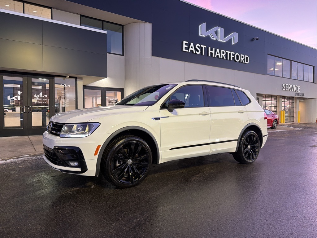 2021 Volkswagen Tiguan 2.0T SE R-Line Black delivers a striking blend of bold design and everyday practicality, making it one of the most desirable compact SUVs for shoppers seeking refined styling, advanced safety, and confident all-weather capability. Finished in Pure White with a sleek Titan Black interior, this Tiguan showcases the highly sought-after R-Line Black appearance, offering a sporty and upscale presence on the road that appeals to drivers who want both performance-inspired design and family-friendly versatility.This Tiguan stands out with its one-of-a-kind styling details including the R-Line Black trim, machined black alloy wheels, LED brakelights, chrome grille accents, and deep-tinted glass. Its advanced safety suite provides exceptional peace of mind with features such as Autonomous Emergency Braking, Forward Collision Warning, Rear Cross Traffic Alert, Side Assist Blind Spot monitoring, and a full set of front, side, and curtain airbags. The Tiguans full-time 4MOTION all-wheel-drive system paired with a turbocharged 2.0L TSI engine and an 8-speed Tiptronic automatic transmission gives the driver strong performance, smooth shifting, and reliable traction in varying conditions.Inside, the cabin offers a premium feel with V-Tex leatherette seating surfaces, heated front comfort seats with a 10-way power drivers seat and lumbar support, leatherette door trims, a leather-wrapped steering wheel, and metal-look interior accents. The expansive interior includes flexible 40/20/40 split-folding rear seating, ample cargo space with concealed storage, three rows of seating courtesy of the 3rd Row Seat Package, and convenient technology such as a digital driver information center, smart device integration, mobile hotspot capability, and adaptive cruise control with traffic stop-and-go. Dual-zone automatic climate control, multiple 12V power outlets, and thoughtful interior lighting further enhance comfort and usability.Additional equipment enhances this Tiguans versatility and premium appeal. The upgraded 20-inch machined black alloy wheels paired with all-season tires elevate its sporty look. VW Care adds long-term convenience, while the Three-Row Carpeted MojoMats with logo and the rear roof-edge spoiler provide practical customization that many Tiguan shoppers search for. The 4-wheel independent suspension, towing equipment with trailer sway control, and multiple drive modes including off-road capability make this Tiguan an excellent choice for drivers wanting a stylish SUV that handles daily commuting, family travel, and weekend adventure with ease.The 2021 Volkswagen Tiguan 2.0T SE R-Line Black offers a compelling combination of design, technology, safety, and versatility. Its Pure White exterior, refined interior, full-time AWD system, and premium R-Line styling make it a standout option among compact SUV shoppers searching for a modern, well-equipped, and highly adaptable vehicle. We are a Dobbs Automotive Company with over 100 years of experience. Kia of East Hartford is the source for all makes and models. www.kiaeast.com.