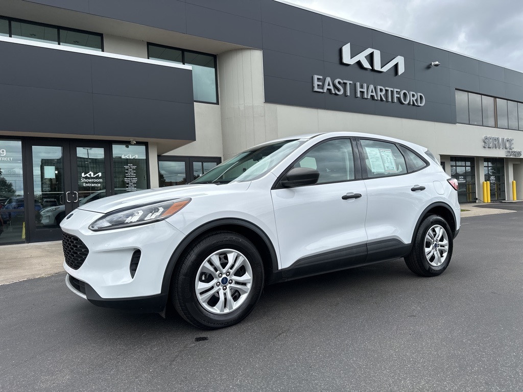 The 2022 Ford Escape S FWD offers a perfect blend of contemporary design, efficient performance, and everyday practicality in a sleek compact-SUV form. Finished in Oxford White with a comfortable cloth interior, this Escape projects confidence and versatility from every angle. Built with Fords engineering excellence, it delivers smooth power, advanced safety technology, and connectivity features designed for the modern driver.Under the hood, the Escape S features a spirited 1.5-liter EcoBoost engine paired with an 8-speed automatic transmission, delivering responsive acceleration and impressive fuel efficiency. Auto Start-Stop Technology further enhances efficiency, seamlessly conserving fuel in city traffic. The compact size and precise electric power-assisted steering make maneuvering through Hartfords city streets or Connecticuts winding roads a pleasure, while the refined suspension ensures a balanced and comfortable ride for every passenger.The cabin is intelligently designed with user-friendly technology and comfort in mind. Cloth bucket front seats, a 6-way manual driver seat, and a 4-way manual passenger seat provide ergonomic support for long drives, while the split-fold/sliding rear seat allows versatile cargo flexibility. The rotary gear-shift dial offers a modern touch and maximizes cabin space, and features like illuminated entry, Smart Charging USB ports, and dual visor vanity mirrors add thoughtful convenience to the everyday commute.Entertainment and connectivity are made easy through Fords SYNC system with AppLink, featuring intuitive voice commands and seamless smartphone integration. A six-speaker AM/FM stereo provides clear, rich sound, while FordPass Connect with a built-in 4G Wi-Fi Hotspot keeps everyone online on the go. Standard Remote Keyless Entry and power windows and locks bring effortless control to your fingertips, and the available Ford Co-Pilot360 suite equips the Escape S with a comprehensive package of driver-assist technologies.Safety remains at the heart of the 2022 Escapes appeal. The model comes equipped with Fords AdvancedTrac with RSC (Roll Stability Control), a full set of airbags including dual-stage front, front-seat side, driver knee, and Safety Canopy curtain airbags. Additional protection systems include BLIS with Cross-Traffic Alert, Curve Control, and the SOS Post-Crash Alert System for added peace of mind. A rearview camera provides a clear perspective when backing up, while the SecuriLock anti-theft system ensures vehicle security even when parked.On the outside, the 2022 Escape S FWD balances functionality and style with features such as automatic halogen headlamps, LED taillamps, dual chrome exhaust tips, power glass mirrors, rear spoiler, privacy glass, and active grille shutters that enhance aerodynamics. Easy Fuel capless filler technology simplifies every stop at the pump, and a rear wiper with defroster ensures clear visibility year-round.Practical, efficient, and confidently modern, the 2022 Ford Escape S FWD brings together the reliability of Ford engineering with the versatility that todays SUV shoppers demand. From its refined powertrain to its advanced safety suite, its the right mix of smart design and everyday usability for drivers seeking both comfort and capability.We are a Dobbs Automotive Company with over 100 years of experience. Kia of East Hartford is the source for all makes and models. www.kiaeast.com.The final price includes conditional offers, which consist of $1575 for financing through Kia of East Hartford.