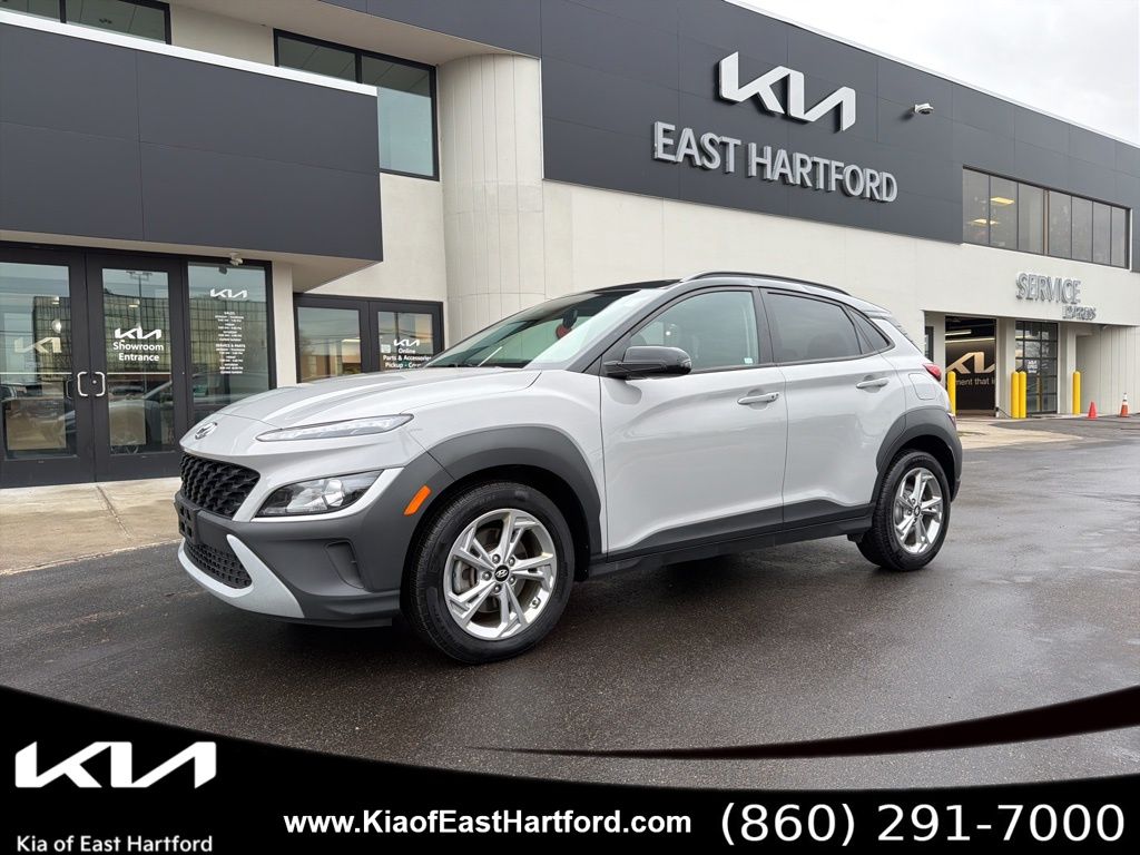 2023 Hyundai Kona SEL AWD offers a compelling blend of style, capability, and technology, making it one of the most attractive options in the compact SUV segment. Finished in the highly desirable Cyber Silver with Black Roof combination, paired with a Black interior, this Kona delivers a modern two-tone aesthetic that continues to rank among the most searched and requested color configurations. Its clean ownership profile and well-equipped feature set make it a strong choice for buyers looking for a versatile and stylish all-wheel drive SUV.This 2023 Hyundai Kona SEL AWD stands out with its unique exterior color combination, advanced safety suite, and a confident all-wheel drive system that enhances its year-round usability. Shoppers frequently search for Konas equipped with Android Auto, Apple CarPlay, Bluelink connected services, push-button start, and a power drivers seat, all of which are included in this example. The combination of Cyber Silver with a Black Roof elevates the vehicles visual appeal and contributes to strong buyer demand for two-tone crossover models.Key features of the 2023 Hyundai Kona SEL AWD include a fuel-efficient 2.0L I4 engine with Idle Stop & Go, paired with an Intelligent Variable Transmission for smooth performance. Its all-wheel drive system enhances handling and traction in varied weather conditions. Advanced safety technology includes Forward Collision-Avoidance Assist, Blind-Spot Collision-Avoidance Assist, Rear Cross-Traffic Collision-Avoidance Assist, Lane Following Assist, Driver Attention Warning, Safe Exit Warning, and Rear Occupant Alert. Exterior elements include 17-inch alloy wheels, LED daytime running lights, heated side mirrors with turn signal indicators, roof side rails, and a temporary spare tire for added convenience. Interior amenities include proximity key with push-button start, a power drivers seat with lumbar support, rearview monitor, front and rear USB charging ports, an 8-inch touchscreen display with Apple CarPlay and Android Auto integration, SiriusXM radio, and Bluelink connected services with remote start.Additional installed equipment on this 2023 Hyundai Kona SEL AWD includes the premium Cyber Silver with Black Roof paint, enhancing the crossovers modern and upscale appearance while increasing its desirability in online searches and showroom traffic.Overall, the 2023 Hyundai Kona SEL AWD delivers a strong combination of efficiency, capability, advanced technology, and standout styling. Its distinctive two-tone exterior, comprehensive safety suite, highly connected interior, and all-wheel drive performance position it as an ideal choice for buyers seeking a compact SUV that blends practicality with premium design.We are a Dobbs Automotive Company with over 100 years of experience. Kia of East Hartford is the source for all makes and models. www.kiaeast.com.