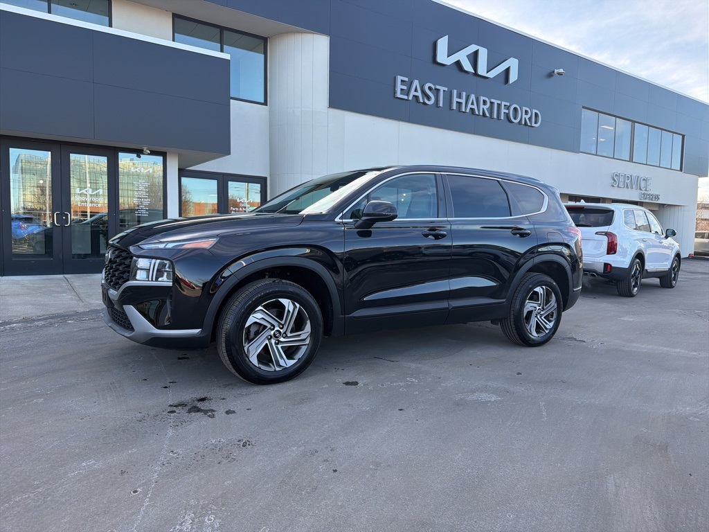 2023 Hyundai Santa Fe SE 2.5L AWD delivers a confident blend of advanced safety, modern technology, and spacious comfort, making it an exceptional choice for families and daily commuters seeking a dependable midsize SUV. Finished in elegant Twilight Black with a refined Beige interior, this Santa Fe presents a timeless and upscale appearance while offering the versatility and capability that shoppers in the SUV segment actively search for. With its efficient 2.5L engine and Hyundai's trusted AWD system, it stands out as a smart and stylish option for drivers valuing performance and practicality.This Santa Fe is especially desirable thanks to its popular exterior and interior color combination, advanced safety suite, and all-weather HTRAC AWD system. Buyers looking for a midsize SUV that balances reliability, comfort, and strong fuel economy will appreciate the thoughtful design and engineering throughout. Its clean layout, intuitive technology, and well-maintained condition make it an appealing choice for shoppers searching Hyundai Santa Fe AWD, midsize SUV with advanced safety, and Hyundai SUV with driver-assist technology.The 2023 Hyundai Santa Fe SE features a 2.5L I4 engine with Idle Stop & Go paired with an 8-speed automatic transmission and paddle shifters, offering smooth acceleration and dependable performance. The HTRAC All-Wheel-Drive system enhances stability and traction in varying road conditions. Safety technology includes Forward Collision-Avoidance Assist, Blind-Spot Collision-Avoidance Assist, Rear Cross-Traffic Collision-Avoidance Assist, Lane Following Assist, Driver Attention Warning, immobilizer, multiple airbags including side-curtain protection, and a rearview camera. Interior comfort and convenience include an 8" color touchscreen display, Android Auto and Apple CarPlay, smart cruise control, keyless entry, air conditioning with second-row vents, USB ports in both rows, split-folding 60/40 rear seats, and high beam assist. Exterior features include 18" alloy wheels, LED headlights and daytime running lights, rear bumper applique, and a temporary spare tire.This Santa Fe SE is enhanced with several useful installed options designed to add convenience and protection. The Cargo Package includes a cargo tray, cargo net, and first aid kit for organized storage. Carpeted floor mats help protect the interior, while wheel locks provide additional security. These additions appeal strongly to shoppers searching for Hyundai Santa Fe with cargo package, Santa Fe with safety features, and AWD SUVs with family-friendly amenities.Overall, the 2023 Hyundai Santa Fe SE 2.5L AWD provides a compelling combination of comfort, capability, and modern technology within a refined and highly sought-after SUV design. Its Twilight Black finish, spacious beige interior, advanced safety systems, and added convenience features make it an excellent option for anyone seeking a versatile and dependable midsize SUV. We are a Dobbs Automotive Company with over 100 years of experience. Kia of East Hartford is the source for all makes and models. www.kiaeast.com.