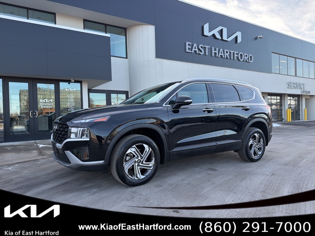 2023 Hyundai Santa Fe SEL AWD is a highly desirable midsize SUV that blends confident all-wheel-drive capability with modern design, advanced safety technology, and everyday versatility. Designed to meet the needs of drivers who value comfort, technology, and performance, this Santa Fe stands out as a well-equipped and refined SUV that performs equally well on daily commutes and longer road trips, making it an excellent choice in the competitive midsize SUV segment.Finished in the sought-after Twilight Black exterior paired with a clean Gray interior, this Santa Fe SEL AWD offers a popular and timeless color combination that enhances both style and resale appeal. The intelligent HTRAC all-wheel-drive system delivers added confidence in changing road and weather conditions, while Hyundais reputation for quality engineering and advanced driver-assistance technology makes this vehicle especially attractive to buyers searching for a reliable, safety-focused SUV with modern features and strong long-term value.Power comes from a responsive 2.5L 4-cylinder engine paired with an 8-speed automatic transmission with paddle shifters, providing smooth acceleration and efficient performance. Advanced safety and driver-assist technologies include forward collision-avoidance assist, blind-spot collision-avoidance assist, rear cross-traffic collision-avoidance assist, lane following assist, driver attention warning, smart cruise control, and highway driving assist, all designed to enhance driver awareness and confidence. Multiple airbags and a reinforced safety structure further contribute to peace of mind.Inside, the Santa Fe SEL AWD delivers a comfortable and well-appointed cabin with heated front seats, a power drivers seat with lumbar support, automatic climate control, a wireless phone charger, and front and second-row USB charging ports. The 10.25-inch touchscreen navigation and infotainment system supports Android Auto and Apple CarPlay, keeping connectivity seamless and intuitive. Convenience features such as proximity key with push-button start, digital key capability, hands-free smart liftgate, rearview camera, and 60/40 split-folding rear seats make this SUV practical for both passengers and cargo. Exterior highlights include 18-inch alloy wheels, LED headlights and daytime running lights, heated side mirrors with turn signal indicators, and roof side rails for added utility.Additional equipment includes carpeted floor mats, a cargo tray, cargo cover, first aid kit, and mud guards, further enhancing everyday usability and protection. Altogether, the 2023 Hyundai Santa Fe SEL AWD delivers an exceptional balance of performance, safety, technology, and comfort, making it a standout option for buyers searching for a well-equipped midsize AWD SUV with modern features and strong overall appeal. We are a Dobbs Automotive Company with over 100 years of experience. Kia of East Hartford is the source for all makes and models. www.kiaeast.com.