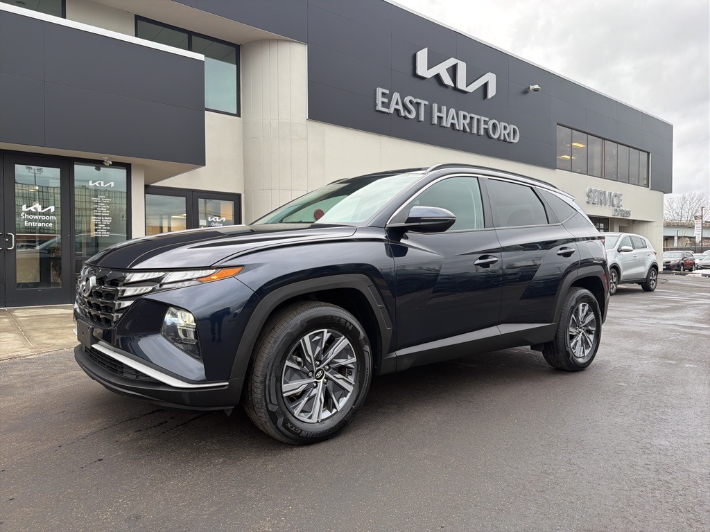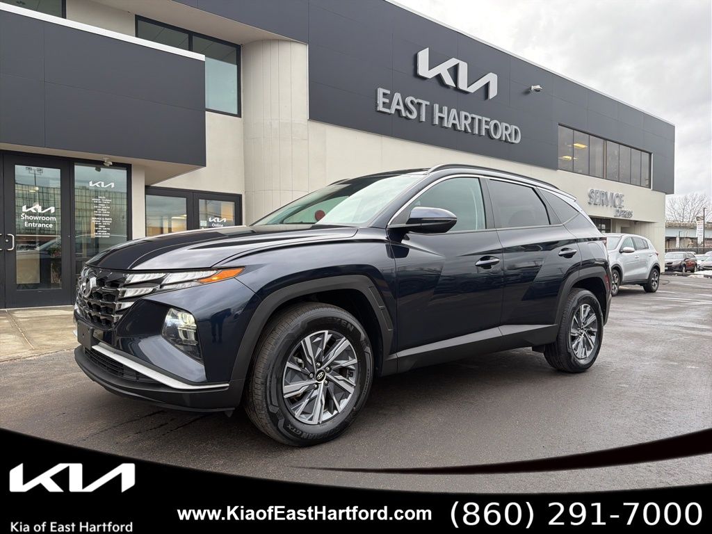 2023 Hyundai Tucson Hybrid Blue AWD offers an exceptional blend of fuel-efficient hybrid performance, modern design, and advanced technology that continues to attract strong search interest among SUV buyers seeking capability without sacrificing efficiency. Finished in the striking Deep Sea exterior with a refined Gray interior, this Tucson Hybrid delivers a highly desirable color combination that enhances its upscale presentation and overall market appeal. Its documented history and complete equipment suite make it an excellent choice for shoppers prioritizing value, style, and advanced engineering.What sets this 2023 Hyundai Tucson Hybrid Blue AWD apart is its turbocharged hybrid powertrain, pairing responsive acceleration with outstanding fuel efficiency while maintaining confident all-weather capability through Hyundais HTRAC all-wheel drive system. The Deep Sea exterior remains a highly searched and preferred finish on the Tucson lineup, offering a premium look that pairs elegantly with the Gray interior. Buyers searching for hybrid SUVs consistently target models that include digital connectivity, comprehensive safety features, and premium convenience equipment, all of which are showcased in this Tucson Hybrid.Key features of the 2023 Hyundai Tucson Hybrid Blue AWD include a 1.6L turbocharged hybrid engine combined with an automatic transmission featuring paddle shifters, a shift-by-wire gear selector, and all-wheel drive for year-round performance. Advanced safety technology includes Forward Collision-Avoidance Assist, Lane Keeping Assist, Lane Following Assist, Blind-Spot Collision-Avoidance Assist, Rear Cross-Traffic Collision-Avoidance Assist, Driver Attention Warning, Safe Exit Warning, multiple airbags, and a tire mobility kit. Exterior enhancements include 17-inch alloy wheels, LED headlights, LED daytime running lights, LED tail lamps, and roof side rails for added utility. Interior comfort and convenience features include heated front seats, dual automatic temperature control, a hands-free smart power liftgate, proximity key with push-button start, wireless device charging, Hyundai Digital Key, a power drivers seat with lumbar support, rear air vents, and an 8-inch display audio system with Apple CarPlay and Android Auto integration, as well as SiriusXM radio, HD Radio, and Bluelink connected services with remote start.Additional equipment installed on this 2023 Hyundai Tucson Hybrid Blue AWD includes carpeted floor mats, a cargo net, cross rails for expanded cargo-carrying capability, and a rear bumper applique for added exterior protection. These features increase practicality and enhance the overall ownership experience for buyers seeking a well-equipped hybrid SUV.Altogether, the 2023 Hyundai Tucson Hybrid Blue AWD delivers a compelling combination of efficiency, technology, safety, and versatility. Its desirable Deep Sea and Gray color pairing, turbocharged hybrid system, comprehensive driver-assist technologies, and added convenience equipment reinforce its value for shoppers looking for a modern, fuel-efficient SUV with all-wheel drive performance. This Tucson Hybrid stands out as a smart and well-rounded choice in the hybrid SUV market.We are a Dobbs Automotive Company with over 100 years of experience. Kia of East Hartford is the source for all makes and models. www.kiaeast.com.