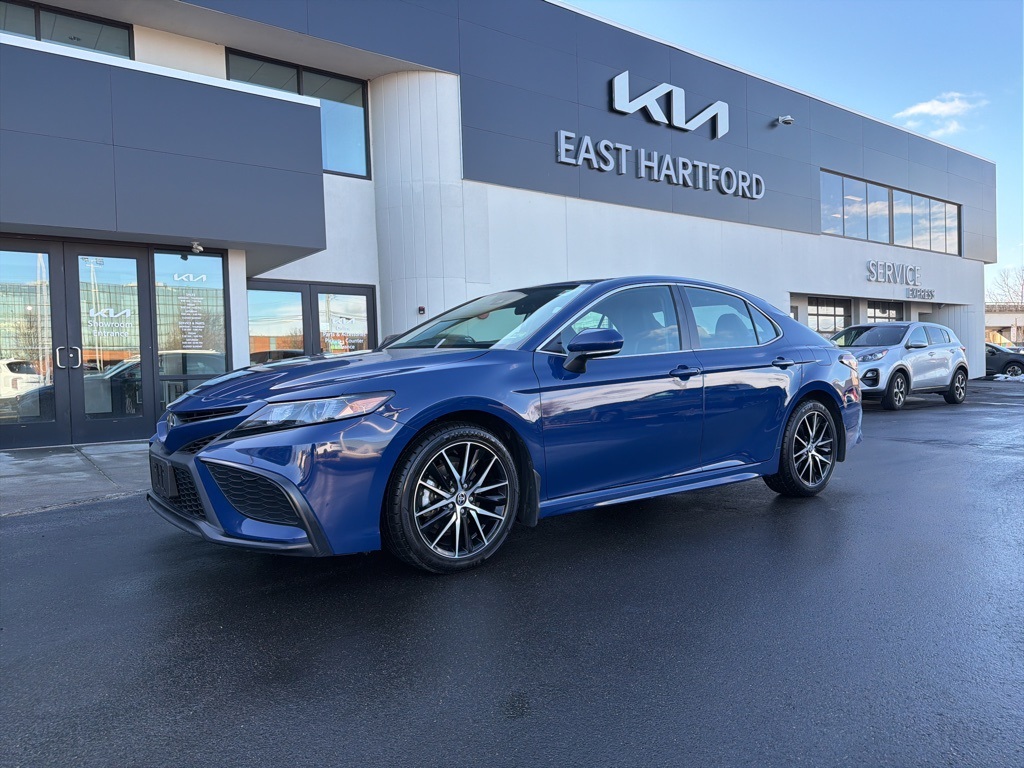 2024 Toyota Camry SE AWD delivers a refined balance of sport-inspired design, confident all-wheel-drive capability, and everyday practicality, making it a standout midsize sedan for drivers who value performance, efficiency, and advanced technology. Finished in the striking Reservoir Blue exterior with a Black SofTex interior, this Camry SE AWD presents a modern, athletic appearance paired with a comfortable and well-appointed cabin designed for daily driving and long-distance comfort.This Camry SE AWD benefits from a desirable color and interior combination and is engineered to perform confidently in a wide range of road and weather conditions thanks to its automatic full-time all-wheel-drive system. The sporty SE styling cues, combined with Toyotas reputation for reliability and long-term durability, make this vehicle a highly sought-after option for buyers searching for an all-wheel-drive sedan with proven efficiency and advanced safety technology.Power comes from a responsive 2.5L 4-cylinder DOHC engine paired with an 8-speed Direct Shift automatic transmission featuring paddle shifters and selectable drive modes, delivering smooth acceleration and engaging performance. A sport-tuned suspension, electric power-assisted steering, four-wheel disc brakes with ABS, and a multi-link rear suspension provide confident handling and a composed ride. Fuel efficiency remains a strong advantage, making this Camry SE AWD an excellent choice for commuters and families alike.Safety is a key highlight with Toyota Safety Sense 2.5+, which includes advanced driver-assist technologies such as pre-collision detection with collision mitigation, lane tracing assist, lane change assist, dynamic radar cruise control with distance pacing, evasion assist, and a backup camera. Additional protection is provided by a comprehensive airbag system, side-impact beams, tire pressure monitoring, and rear child safety locks.Inside, the cabin offers dual-zone automatic climate control, a power-adjustable driver seat with lumbar support, a leather-wrapped steering wheel, adaptive cruise control, a driver information center, and a modern infotainment system with multiple displays and steering wheel controls. Exterior features include LED lighting, automatic high-beam headlamps, a rear lip spoiler, alloy styling accents, and a sleek black grille that enhances the Camrys sporty presence.Additional equipment includes the Cold Weather Package for enhanced comfort in colder climates, all-weather floor liners, mudguards, door edge guards, and a quick charging cable package, adding everyday convenience and seasonal versatility.Overall, the 2024 Toyota Camry SE AWD stands out as a well-rounded sedan offering all-wheel-drive confidence, advanced safety features, sporty styling, and exceptional comfort. It is an excellent option for drivers searching for a dependable, stylish, and technology-forward midsize sedan with all-weather capability. We are a Dobbs Automotive Company with over 100 years of experience. Kia of East Hartford is the source for all makes and models. www.kiaeast.com.
