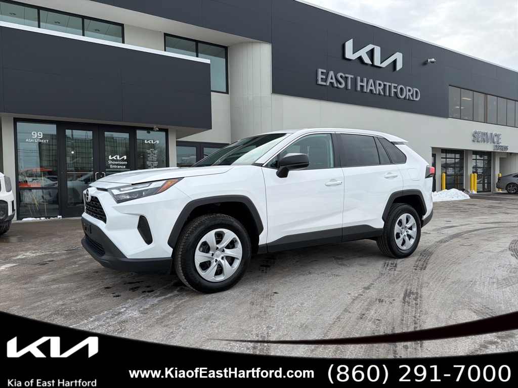2024 Toyota RAV4 LE AWD is a proven compact SUV engineered for versatility, efficiency, and everyday dependability, making it one of the most sought-after all-wheel-drive SUVs in its class. Finished in Ice Cap with a Black fabric interior, this RAV4 delivers a clean, modern appearance paired with a durable and comfortable cabin designed for both commuting and weekend travel.This RAV4 LE AWD benefits from Toyotas reputation for long-term reliability and strong resale value, combined with a highly desirable all-wheel-drive configuration that enhances traction and confidence in a wide range of road and weather conditions. Powered by a 2.5L DOHC 4-cylinder engine with Dual VVT-i and paired with an automatic transmission, the RAV4 offers smooth performance, responsive acceleration, and impressive fuel efficiency, achieving an excellent balance of power and economy that appeals to both families and daily drivers.Inside, the cabin is thoughtfully laid out with practical materials and intuitive controls. Comfortable front bucket seats, a versatile 60/40 split-folding rear seat, and ample cargo space make the RAV4 adaptable for passengers and gear alike. Smart device integration, Bluetooth connectivity, multiple USB and 12V power outlets, Wi-Fi capability, and a clear driver information display support modern connectivity needs, while manual climate control and well-placed storage solutions enhance everyday usability. The interior design emphasizes durability and functionality, ideal for active lifestyles.The exterior design reflects Toyotas rugged yet refined styling, featuring LED headlamps with automatic high beams, LED brake lights, a bold grille with body-color accents, deep-tinted rear glass, and 17-inch wheels that complement the SUVs confident stance. Practical elements such as a rear liftgate, roof-ready profile, and protective body cladding add to its everyday versatility and visual appeal.Safety is a major strength of the 2024 RAV4 LE AWD, equipped with Toyota Safety Sense technologies that include Pre-Collision System with Intersection Support, Lane Tracing Assist, dynamic radar cruise control with traffic stop-and-go capability, a backup camera, multiple advanced airbag systems, side impact beams, stability control, and hill hold assist. These features work together to provide added peace of mind and driver confidence on every trip.Overall, the 2024 Toyota RAV4 LE AWD stands out as a well-rounded compact SUV offering all-wheel-drive capability, advanced safety technology, excellent fuel economy, and Toyotas renowned reliability, making it an outstanding choice for drivers seeking long-term value and everyday practicality. We are a Dobbs Automotive Company with over 100 years of experience. Kia of East Hartford is the source for all makes and models. www.kiaeast.com.
