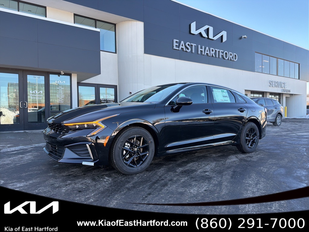 Price includes: $1000 - KFA Dealer Choice Program: $1000 discount and 5.25% APR for 36 months. $30.08 per $1000 financed. Available to well qualified buyers who finance through Kia Finance America. 506. Exp. 03/02/2026 2026 Kia K5 LXS FWD delivers sleek midsize sedan styling, advanced technology, and impressive efficiency in a refined and modern package. Finished in Aurora Black Pearl with a clean Black interior, this K5 offers a sophisticated appearance paired with the everyday practicality drivers expect from one of the most popular sedans in its class. With its bold exterior design, spacious cabin, and smart front-wheel-drive dynamics, the K5 LXS is an excellent choice for commuters and families alike who value comfort, safety, and fuel efficiency.This K5 LXS stands out with its desirable color combination and reputation for reliability, efficiency, and value. Known for its smooth ride and intuitive technology, the 2026 Kia K5 continues to attract buyers seeking a stylish alternative to traditional midsize sedans. The LXS trim emphasizes comfort, safety, and modern connectivity while maintaining an athletic design that looks upscale and contemporary on the road.Power comes from a responsive 2.5L GDI 4-cylinder engine paired with an 8-speed automatic transmission, delivering confident acceleration and excellent fuel economy with an EPA-estimated 26 MPG city and 37 MPG highway. A multi-link rear suspension and electric power-assisted steering provide a balanced and composed driving experience, while idle stop-and-go technology helps maximize efficiency during daily driving. Front-wheel drive enhances fuel economy and delivers predictable handling in a variety of driving conditions.Safety is a major highlight of the 2026 Kia K5 LXS, featuring an advanced suite of driver-assist technologies including Forward Collision-Avoidance Assist with pedestrian, cyclist, and junction turning detection, Blind-Spot Collision-Avoidance Assist, Rear Cross-Traffic Collision Avoidance, Lane Following Assist, Smart Cruise Control with Stop & Go, front and rear parking sensors, and a rear view monitor with parking guidance. A full airbag system, driver monitoring alerts, and tire pressure monitoring further enhance peace of mind for both driver and passengers.The exterior design features LED lighting with automatic high beams, gloss black 16-inch alloy wheels, chrome window trim, body-colored bumpers and mirrors, and a refined metal-look grille that gives the K5 a sporty yet elegant profile. Inside, the cabin is thoughtfully designed with dual-zone automatic climate control, a 12.3-inch infotainment display, wireless Apple CarPlay and Android Auto, Bluetooth connectivity, turn-by-turn navigation support, multiple digital displays, and a comfortable seating layout with fold-down rear seats for added versatility. Smart trunk proximity access, ample cargo space, and intuitive controls make the K5 easy to live with every day.With its striking design, advanced safety technology, excellent fuel efficiency, and well-appointed interior, the 2026 Kia K5 LXS FWD is a standout midsize sedan that delivers exceptional value and everyday comfort. This Kia K5 is ready to provide a confident, connected, and enjoyable driving experience. We are a Dobbs Automotive Company with over 100 years of experience. Kia of East Hartford is the source for all makes and models. www.kiaeast.com.