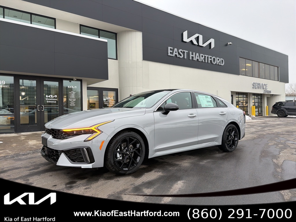Price includes: $1000 - KFA Dealer Choice Program: $1000 discount and 5.25% APR for 36 months. $30.08 per $1000 financed. Available to well qualified buyers who finance through Kia Finance America. 506. Exp. 03/02/2026 2026 Kia K5 GT-Line is a bold and athletic midsize sedan that blends performance-inspired styling with advanced technology and everyday comfort. Finished in striking Aurora Black Pearl with a Black interior accented by white trim, this K5 delivers a sleek, confident presence that stands out on the road. Designed to appeal to drivers who want sporty design without sacrificing refinement, the GT-Line trim adds distinctive exterior details, an engaging driving experience, and modern features that elevate every commute or weekend drive.This well-equipped K5 GT-Line features a highly desirable color and interior combination and is enhanced with premium equipment that sets it apart in the competitive midsize sedan segment. Known for its sharp styling, driver-focused cockpit, and advanced safety systems, the 2026 Kia K5 GT-Line continues to be a popular choice for drivers seeking a balance of efficiency, technology, and dynamic design. The GT-Line appearance cues and refined interior create a sporty yet sophisticated atmosphere that appeals to a wide range of buyers.Under the hood, the K5 GT-Line is powered by a responsive 2.5L GDI 4-cylinder engine paired with a smooth automatic transmission, delivering strong everyday performance and impressive highway efficiency. Safety and driver-assist technologies include Forward Collision-Avoidance Assist with pedestrian, cyclist, and junction turning detection, Blind-Spot Collision-Avoidance Assist, Rear Cross-Traffic Collision Avoidance, Highway Driving Assist, Smart Cruise Control with Stop & Go, front and rear parking sensors, a rear view monitor with parking guidance, driver monitoring alerts, and a comprehensive airbag system, all working together to enhance confidence behind the wheel.The exterior design features LED lighting, automatic high-beam headlights, front fog lamps, a metal-look grille, 18-inch alloy wheels, chrome window trim, and sleek GT-Line styling accents that emphasize the K5s sporty character. Inside, the cabin offers heated front seats, a sport heated leather steering wheel, dual-zone automatic climate control, power-adjustable driver seating, premium interior trim accents, ambient interior lighting, and a driver-focused layout designed for comfort and convenience. The advanced infotainment system features a large 12.3-inch display with navigation, wireless Apple CarPlay and Android Auto, Bluetooth connectivity, voice recognition, and premium audio enhancements, creating a connected and enjoyable driving environment.With its aggressive styling, advanced safety technology, premium interior appointments, and engaging performance, the 2026 Kia K5 GT-Line is an exceptional midsize sedan that delivers both excitement and practicality. This thoughtfully equipped K5 is ideal for drivers looking for a modern sedan that stands out in design and capability while remaining comfortable and efficient for daily use. We are a Dobbs Automotive Company with over 100 years of experience. Kia of East Hartford is the source for all makes and models. www.kiaeast.com.