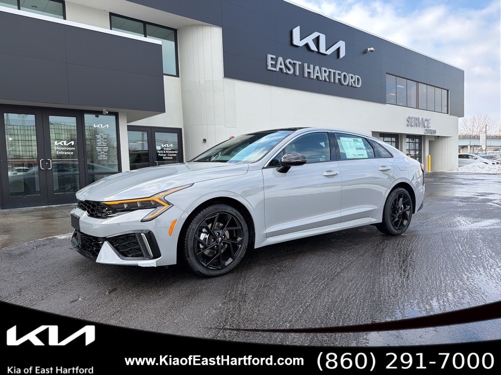 Price includes: $1000 - KFA Dealer Choice Program: $1000 discount and 5.25% APR for 36 months. $30.08 per $1000 financed. Available to well qualified buyers who finance through Kia Finance America. 506. Exp. 03/02/2026 2026 Kia K5 GT-Line is a bold and athletic midsize sedan that blends performance-inspired styling with advanced technology and everyday comfort. Finished in striking Aurora Black Pearl with a Black interior accented by white trim, this K5 delivers a sleek, confident presence that stands out on the road. Designed to appeal to drivers who want sporty design without sacrificing refinement, the GT-Line trim adds distinctive exterior details, an engaging driving experience, and modern features that elevate every commute or weekend drive.This well-equipped K5 GT-Line features a highly desirable color and interior combination and is enhanced with premium equipment that sets it apart in the competitive midsize sedan segment. Known for its sharp styling, driver-focused cockpit, and advanced safety systems, the 2026 Kia K5 GT-Line continues to be a popular choice for drivers seeking a balance of efficiency, technology, and dynamic design. The GT-Line appearance cues and refined interior create a sporty yet sophisticated atmosphere that appeals to a wide range of buyers.Under the hood, the K5 GT-Line is powered by a responsive 2.5L GDI 4-cylinder engine paired with a smooth automatic transmission, delivering strong everyday performance and impressive highway efficiency. Safety and driver-assist technologies include Forward Collision-Avoidance Assist with pedestrian, cyclist, and junction turning detection, Blind-Spot Collision-Avoidance Assist, Rear Cross-Traffic Collision Avoidance, Highway Driving Assist, Smart Cruise Control with Stop & Go, front and rear parking sensors, a rear view monitor with parking guidance, driver monitoring alerts, and a comprehensive airbag system, all working together to enhance confidence behind the wheel.The exterior design features LED lighting, automatic high-beam headlights, front fog lamps, a metal-look grille, 18-inch alloy wheels, chrome window trim, and sleek GT-Line styling accents that emphasize the K5s sporty character. Inside, the cabin offers heated front seats, a sport heated leather steering wheel, dual-zone automatic climate control, power-adjustable driver seating, premium interior trim accents, ambient interior lighting, and a driver-focused layout designed for comfort and convenience. The advanced infotainment system features a large 12.3-inch display with navigation, wireless Apple CarPlay and Android Auto, Bluetooth connectivity, voice recognition, and premium audio enhancements, creating a connected and enjoyable driving environment.With its aggressive styling, advanced safety technology, premium interior appointments, and engaging performance, the 2026 Kia K5 GT-Line is an exceptional midsize sedan that delivers both excitement and practicality. This thoughtfully equipped K5 is ideal for drivers looking for a modern sedan that stands out in design and capability while remaining comfortable and efficient for daily use. We are a Dobbs Automotive Company with over 100 years of experience. Kia of East Hartford is the source for all makes and models. www.kiaeast.com.
