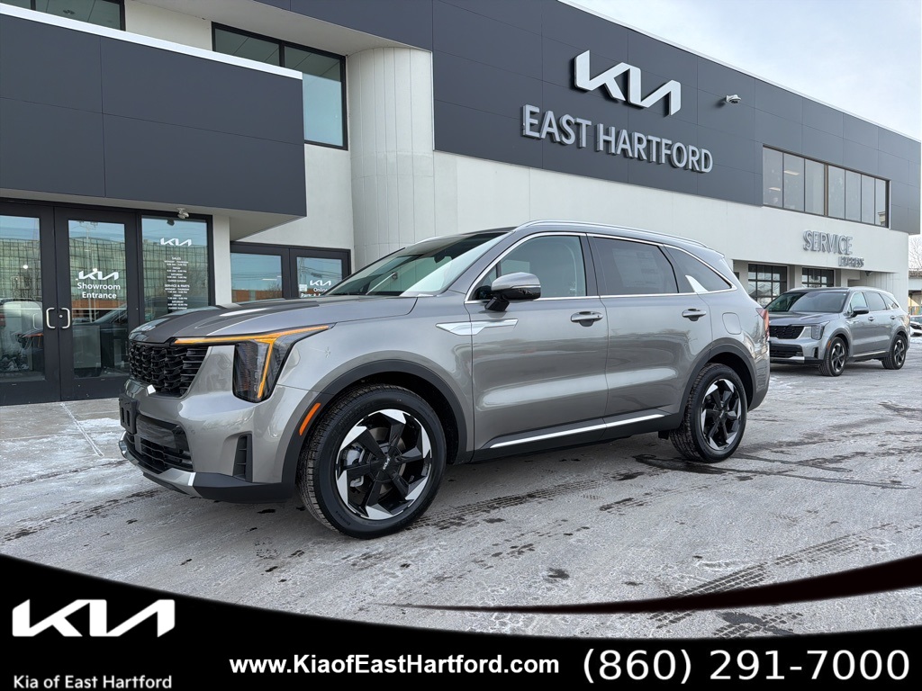 Price includes: $2500 - KFA Dealer Choice Program: $2500 discount and 5.25% APR for 36 months. $30.08 per $1000 financed. Available to well qualified buyers who finance through Kia Finance America. 506. Exp. 03/02/2026 2026 Kia Sorento EX AWD delivers an exceptional combination of efficiency, technology, and refined versatility, positioning it as one of the most desirable midsize SUVs in its class. Designed to meet the needs of modern families and commuters alike, the Sorento EX AWD offers a sophisticated exterior presence, a thoughtfully designed interior, and advanced all-wheel-drive capability that inspires confidence in a wide range of driving conditions, from daily errands to long-distance travel.This Sorento is finished in Steel Gray with a Gray interior, a clean and highly appealing color combination that continues to perform strongly in search results and buyer interest. The EX trim is particularly popular for drivers seeking an elevated balance of comfort, technology, and fuel-efficient performance, while still maintaining the practicality of three-row seating. Known for its reliability, advanced engineering, and strong market demand, the Sorento EX AWD stands out as a smart choice in the competitive midsize SUV segment.Under the hood, the turbocharged 1.6L four-cylinder hybrid powertrain works seamlessly with a smooth 6-speed automatic transmission to deliver impressive fuel efficiency without sacrificing responsiveness. The advanced all-wheel-drive system with selectable drive and terrain modes enhances traction and stability in snow, mud, sand, and varying road conditions. Safety and driver-assistance technology are core strengths, featuring forward collision-avoidance assist with pedestrian, cyclist, and junction turning detection, blind-spot collision warning, rear cross-traffic collision avoidance, highway driving assist, front and rear parking sensors, driver monitoring alert, and a rearview camera to support confident and secure driving. Inside, the Sorento EX offers heated front seats, power-adjustable driver and passenger seating, navigation-based smart cruise control with stop and go, dual-zone automatic climate control, a leather-wrapped steering wheel, and a well-integrated driver information center. The flexible interior layout includes second-row captains chairs, a split-folding second row, and a third-row seat that folds into the floor, allowing the cabin to adapt easily between passenger comfort and cargo capacity. Exterior highlights such as 19-inch machine-finished alloy wheels, LED lighting, chrome window trim, and refined body lines give the Sorento a modern, upscale appearance.Additional equipment further enhances the driving experience with features such as a panoramic sunroof with power sunshade, premium Bose audio system, LED interior lighting, and all-weather floor mats, adding both comfort and everyday usability. These features make the Sorento EX AWD especially attractive to shoppers searching for a fuel-efficient hybrid SUV with third-row seating, advanced safety systems, and premium interior amenities.Overall, the 2026 Kia Sorento EX AWD delivers a compelling blend of efficiency, capability, safety, and refinement in a highly sought-after configuration. With its strong hybrid performance, desirable color combination, and well-equipped EX trim, it remains an excellent choice for drivers seeking a modern midsize SUV that excels in both comfort and technology. We are a Dobbs Automotive Company with over 100 years of experience. Kia of East Hartford is the source for all makes and models. www.kiaeast.com.