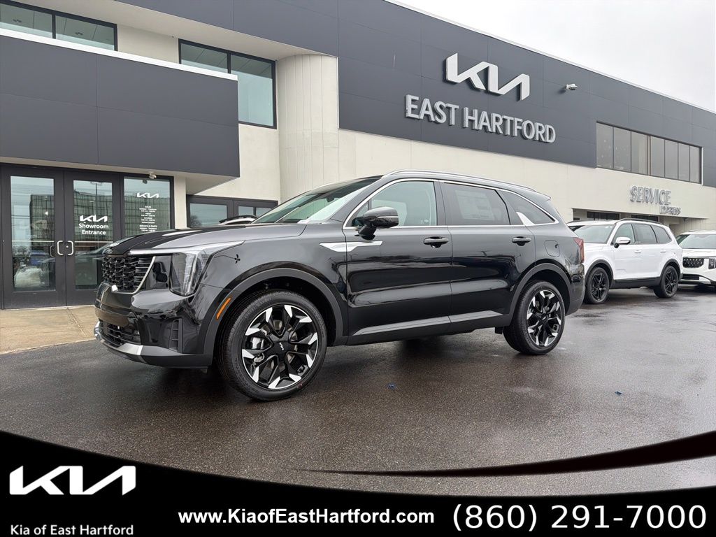 Price includes: $3000 - KFA Dealer Choice Program: $3000 discount and 5.25% APR for 36 months. $30.08 per $1000 financed. Available to well qualified buyers who finance through Kia Finance America. 506. Exp. 05/04/2026 2026 Kia Sorento EX AWD delivers a refined balance of performance, technology, and versatility in a modern three-row SUV designed to handle everyday driving with confidence. Finished in highly sought-after Wolf Gray with a Black interior, this Sorento offers a clean, upscale appearance that pairs perfectly with its advanced all-wheel-drive capability. With its bold exterior design, spacious cabin, and smooth driving dynamics, the Sorento EX AWD is an ideal choice for families and drivers who want comfort, capability, and modern styling in one well-rounded vehicle.This Sorento EX AWD stands out with its desirable color combination and strong reputation for quality, safety, and long-term reliability. The EX trim level is one of the most popular configurations thanks to its premium interior features, advanced driver-assistance technology, and turbocharged performance. Combined with intelligent all-wheel drive, this Sorento is well suited for New England weather conditions while maintaining a comfortable and composed ride year-round.Power comes from a responsive 2.5L turbocharged GDI 4-cylinder engine paired with an advanced 8-speed dual-clutch automatic transmission, delivering smooth acceleration and confident passing power. The full-time all-wheel-drive system with multiple drive modes enhances traction and stability in snow, rain, and varying road conditions. A multi-link rear suspension, brake-actuated limited-slip differential, and hill hold and descent control contribute to a balanced and secure driving experience.Safety is a major highlight of the 2026 Kia Sorento EX AWD, featuring an extensive suite of driver-assist technologies including Forward Collision-Avoidance Assist with pedestrian, cyclist, and junction turning detection, Blind-Spot Collision Warning with parallel exit assist, Rear Cross-Traffic Collision Avoidance, Highway Driving Assist, Navigation-Based Smart Cruise Control with stop and go, front and rear parking sensors, a rear view monitor with parking guidance, driver monitoring alerts, and a comprehensive airbag system covering multiple seating rows.The exterior design is both sporty and refined, showcasing LED lighting with automatic high beams, front fog lamps, a panoramic sunroof with power sunshade, gloss black 20-inch alloy wheels, black exterior accents, deep tinted glass, and sleek body lines that give the Sorento a confident road presence. Inside, the cabin offers a premium and comfortable environment with heated front seats, power-adjustable seating, a leather-wrapped steering wheel and shifter, dual-zone automatic climate control, simulated wood and metal-look interior trim, ambient interior lighting, and a versatile third-row seating configuration that folds flat for added cargo flexibility.Technology and connectivity are seamlessly integrated with digital displays, real-time traffic updates, premium audio amplification, multiple power outlets, intuitive infotainment controls, and smart storage solutions throughout the cabin. The Sorento is designed to keep drivers and passengers connected, comfortable, and in control on every trip.With its turbocharged performance, advanced all-wheel-drive capability, comprehensive safety technology, and refined interior design, the 2026 Kia Sorento EX AWD is an outstanding midsize SUV that delivers comfort, confidence, and versatility in equal measure. We are a Dobbs Automotive Company with over 100 years of experience. Kia of East Hartford is the source for all makes and models. www.kiaeast.com.