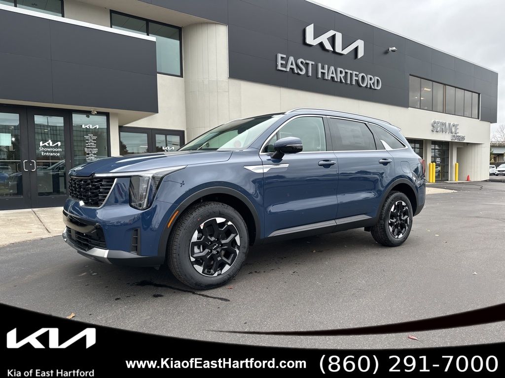 Price includes: $2500 - Kia Customer Cash. Exp. 03/31/2026 The 2026 Kia Sorento S AWD blends modern design, advanced safety technology, and family-ready versatility in a striking Midnight Lake Blue exterior paired with a refined Gray interior. Its confident stance, bold black grille, gloss-black 18-inch alloy wheels, and sleek LED lighting create an upscale appearance that stands out on the road. Under the hood, the 2.5L GDI MPI 4-cylinder engine with idle stop and go delivers smooth, responsive performance, and the 8-speed automatic transmission with multiple drive modes helps tailor every journey. The automatic full-time all-wheel-drive system enhances traction and stability in varying conditions, making this Sorento a strong match for drivers who want capability and comfort.Advanced safety and driver-assistance systems make the Sorento S a reassuring choice for modern families. Features include Forward Collision-Avoidance Assist with cyclist, pedestrian, and junction-turning detection, Rear Cross-Traffic Collision Avoidance, Blind-Spot Collision Warning, Driver Monitoring-Alert, Parking Distance Warning front and rear, side impact protection, and a back-up camera. These intuitive systems work together to support confident driving in busy traffic, low-visibility areas, and everyday commuting.Inside, the Sorento S offers a comfortable and flexible three-row layout designed to adapt to passengers or cargo with ease. Heated front bucket seats with a 10-way power drivers seat and lumbar support, a leather steering wheel, a leather-wrapped shifter, and dual-zone automatic climate control elevate the driving experience. The cabin includes thoughtful conveniences such as LED interior lighting, multiple storage bins, a full-floor center console, USB connectivity, two 12V power outlets, a driver information center, cargo area lighting, reclining second-row seats with a sliding function, and a 50/50 split third row that folds flat into the floor. Deep tinted glass enhances privacy and temperature control, while the panoramic one-touch sunroof with sliding sunshade brings an open, airy feel that increases comfort and desirability.Added features on this 2026 Sorento S AWD include the S Panoramic Sunroof Package with a full-length one-touch panoramic roof, SynTex artificial leather seat trim, LED interior lighting, carpeted floor mats, the Midnight Lake Blue exterior color, heated front bucket seats, 18-inch gloss-black alloy wheels, 235/60R18 tires, and the smooth 8-speed automatic transmission. These upgrades add style, comfort, and premium utility, helping this configuration stand out to shoppers searching for a well-equipped three-row SUV that balances performance and modern features.The 2026 Kia Sorento S AWD brings together dynamic design, confidence-inspiring technology, and versatile interior space for families who want a refined SUV capable of supporting daily life and weekend travel. With its distinctive color combination, panoramic roof, advanced safety suite, and adaptable three-row cabin, this Sorento is designed to meet the needs of drivers who expect both sophistication and practicality. We are a Dobbs Automotive Company with over 100 years of experience. Kia of East Hartford is the source for all makes and models. www.kiaeast.com.